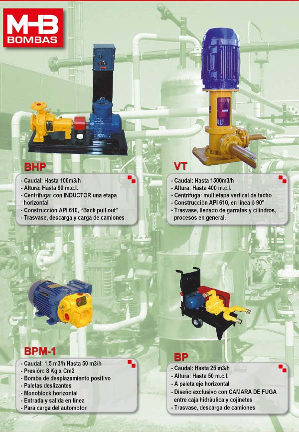 M.H.B. BOMBAS Y COMPRESORES S.R.L., Es una empresa Argentina dedicada al DISEÑO, FABRICACIÓN Y REPARACIÓN de equipos especiales para transporte en la industria de procesos como la Química, Petroquímica, Petróleo, Papelera, Alimenticia, etc.