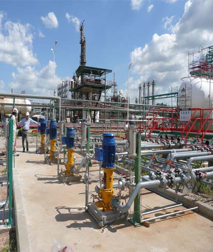 El tipo de bomba de proceso VT, ES LA Bomba Vertical de Tacho más utilizada en el transporte de GLP en Gasoductos, Plantas de almacenaje, Trasvase, Descarga de Buques, Plantas de envasado de Cilindros y Garrafas alimentando carruseles de balanzas para llenado automático.